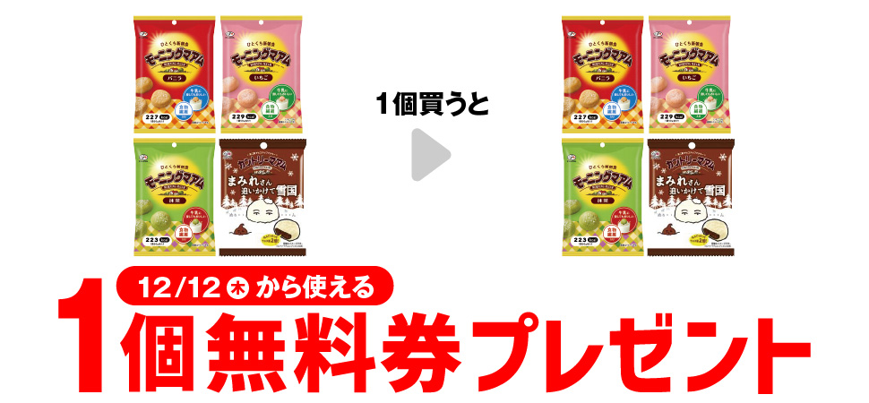 1. 購入対象商品: 不二家 モーニングマアム バニラ / いちご / 抹茶、不二家 カントリーマアムまみれ 追いかけて雪国