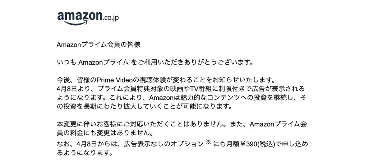 Amazon Prime VideoがCM広告解除に課金 4月8日から広告を導入 広告なしオプション月額390円の改悪 Amazonの有料会員向け動画配信サービス「Prime Video」が、2025年4月8日より広告を表示することが明らかになった。これにより、会員特典として提供される映画やテレビ番組の視聴時に、制限付きで広告が流れるようになる。Amazon... 2025.02.27 ライフスタイル